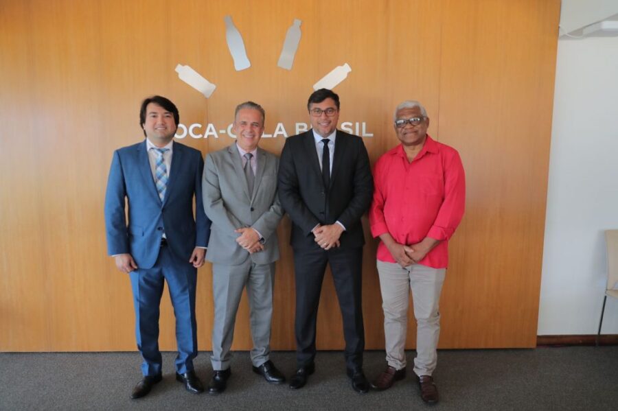 O governador Wilson Lima reuniu com os presidentes dos bois do Festival Folclórico de Parintins, Jender Lobato, do Caprichoso, e Antônio Andrade, do Garantido, e o diretor de relações governamentais da Coca-Cola Brasil, Victor Bicca, nesta sexta-feira (27/01), em Brasília, onde os patrocínios do Estado e da Coca-Cola para a realização do festival de 2023 foram confirmados.