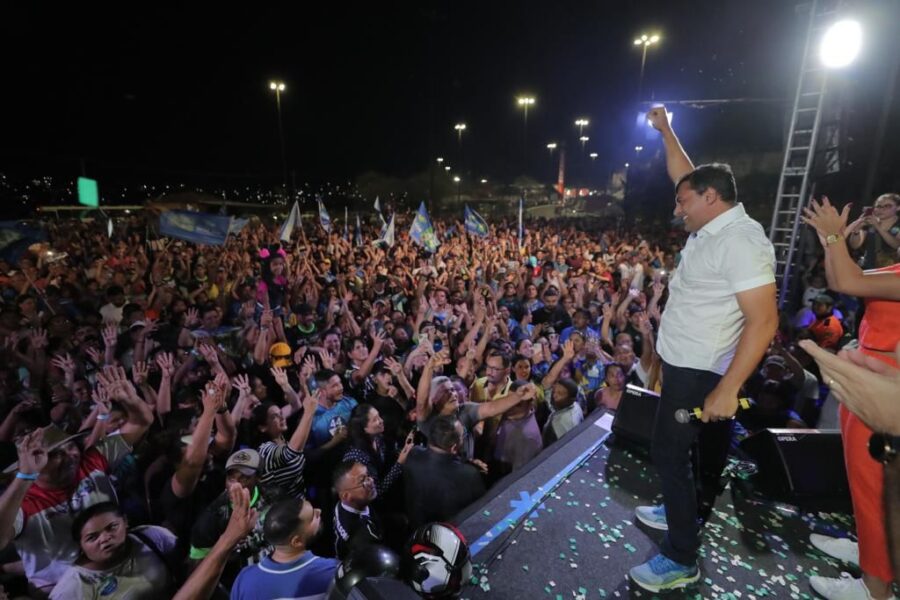 Reunindo 5 mil pessoas, o candidato à reeleição, governador Wilson Lima (União Brasil), realizou na noite de hoje (8) mais um comício em Manaus, no Largo do Mestre Chico, na zona sul, após novo encontro de carreatas, que saíram de 19 pontos da capital.
